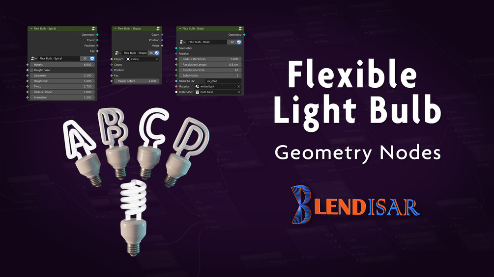 Groups of nodes to create a spiral bulb, flexible and with the possibility of using other curves to change the shape.