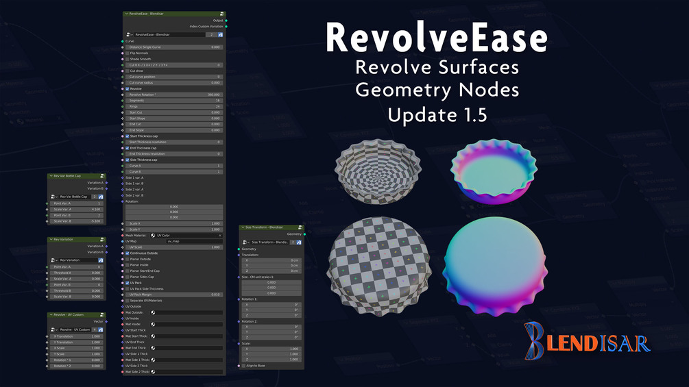 Vector – This output is connected to any of the UV Outside, Inside, etc. inputs. from the “RevolveEase – Blendisar” node group